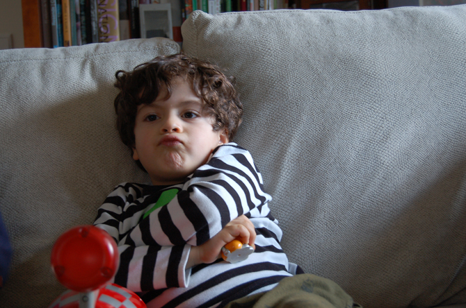 estavas chateado porque a mãe queria tirar uma foto aos dois e o edgar desceu do sofá. eu gosto destas tuas caretas =)